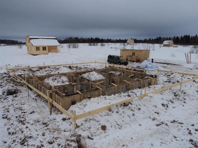 Таким образом, зимой тоже можно выполнять бетонные работы, а в некоторых случаях даже выгодно или удобно. Неправда, что заливка фундамента зимой обойдется в копеечку. Зимой цемент стоит дешевле, проще и дешевле привезти материалы на площадку, легче найти хорошую бригаду строителей. Модифицированный противоморозными добавками бетон не уступает по качеству летнему.
