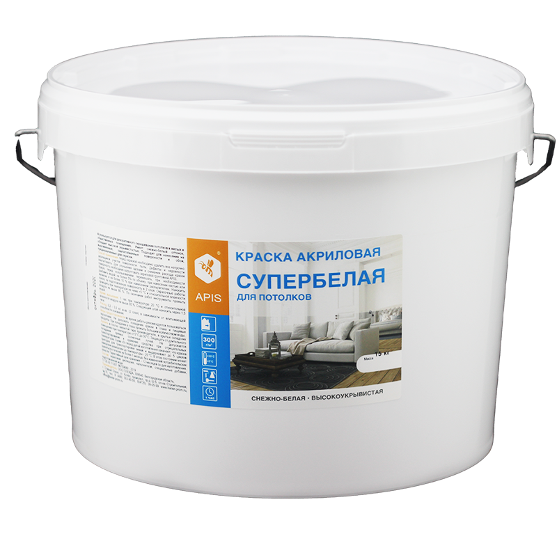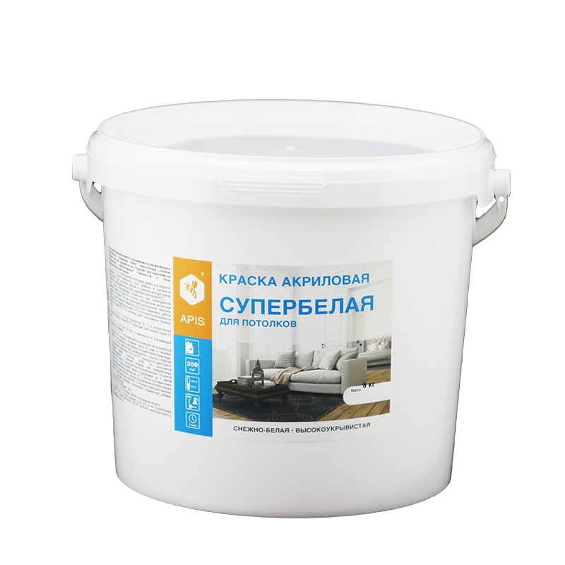 —Краска акриловая APIS для потолков супербелая