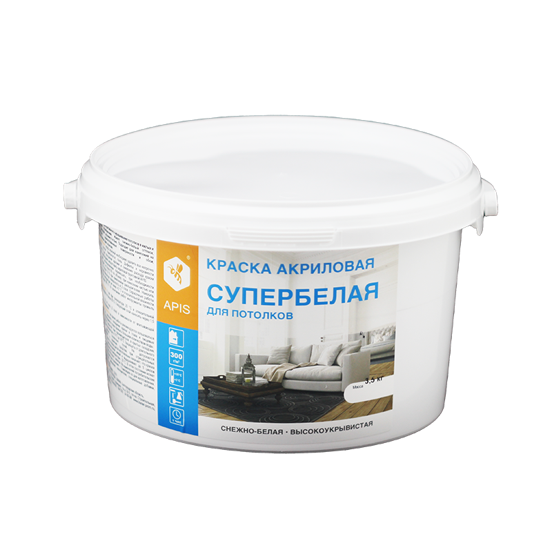 Краска акриловая APIS для потолков супербелая