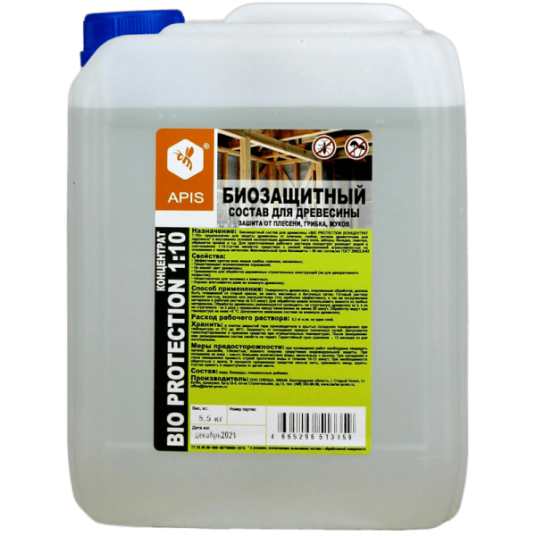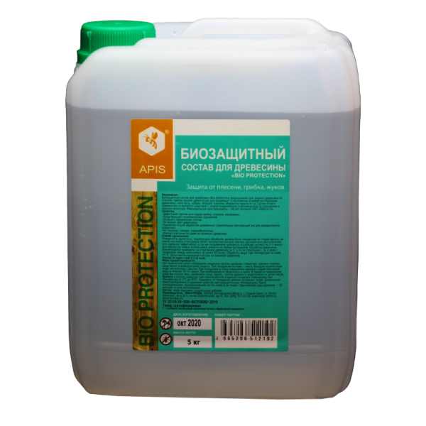 - Биозащитный состав для древесины APIS bio protection - бесцветный антисептик, эффективный против грибка, плесени и насекомых. Кроме того состав предотвращает разрушение древесины, способствуя его биозащите.