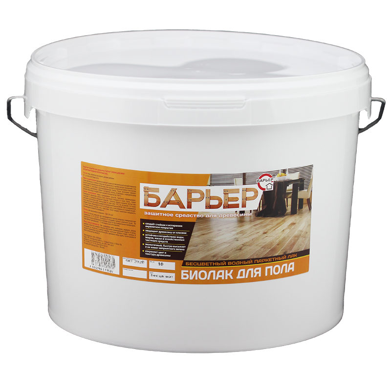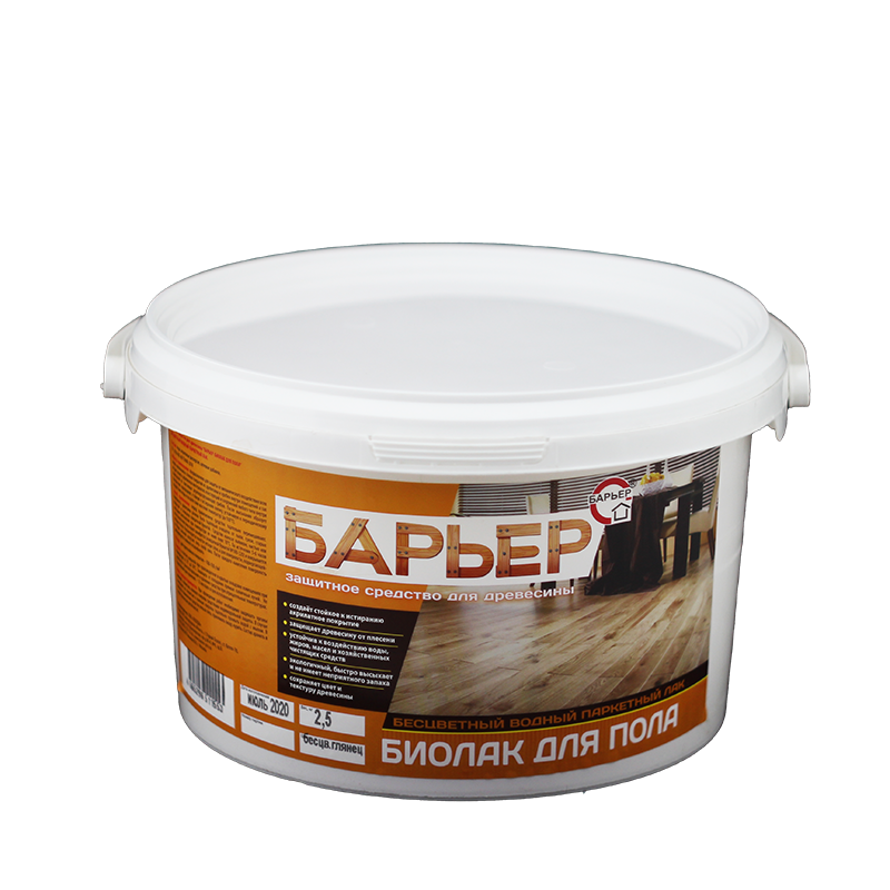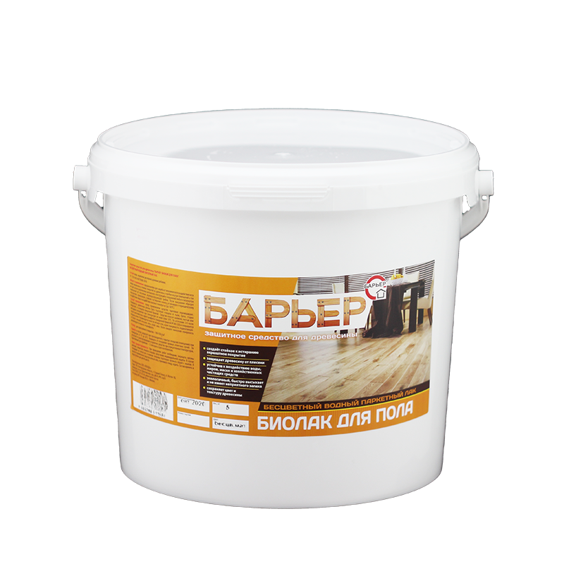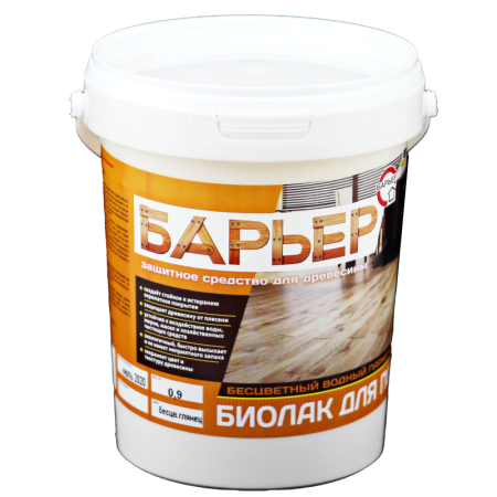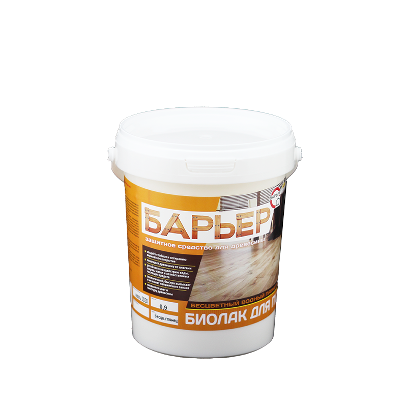 Защитный состав для древесины БАРЬЕР БИОЛАК ДЛЯ ПОЛА предназначен для защиты древесины от механических воздействий: истирания, царапины и абразивному износу. Образует долговечное, ударопрочное, устойчивое к воздействию воды, масел, бытовой химии, слабых кислот покрытие. А так же предназначен для предотвращения биопоражений на деревянных покрытиях (плесневых, окрашивающих и дереворазрушающих грибов, водорослей).